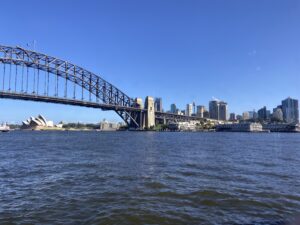 海面は太陽の光を浴びてキラキラと輝き、遠くに見えるオペラハウスやハーバーブリッジは、ポストカードのような完成された美しさでした。